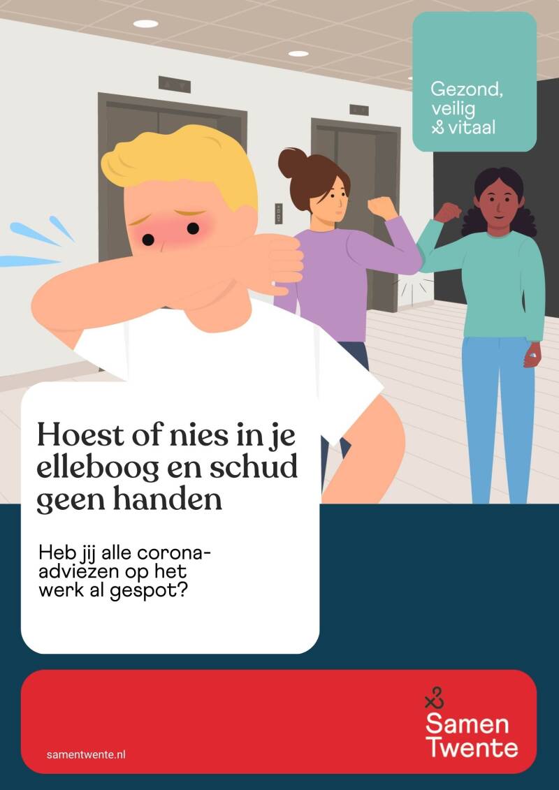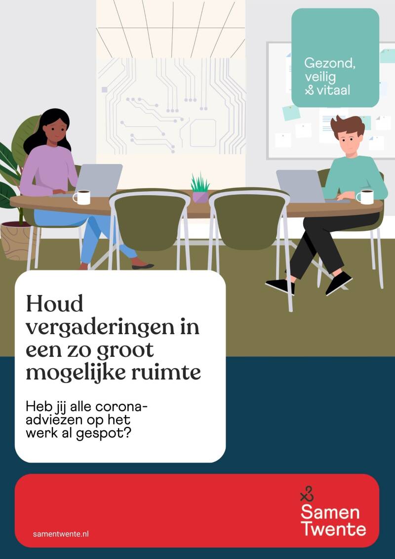 Ontwerp posters voor SamenTwente. Via deze posters wilde men de medewerkers informeren over de coronamaatregelen op de werkvloer. Hierbij gewerkt met herkenbare locaties in het gebouw en herkenbare personages.